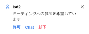 ここで、ホストユーザーが「許可」をクリックすると、ゲストユーザーがミーティングに追加されます。