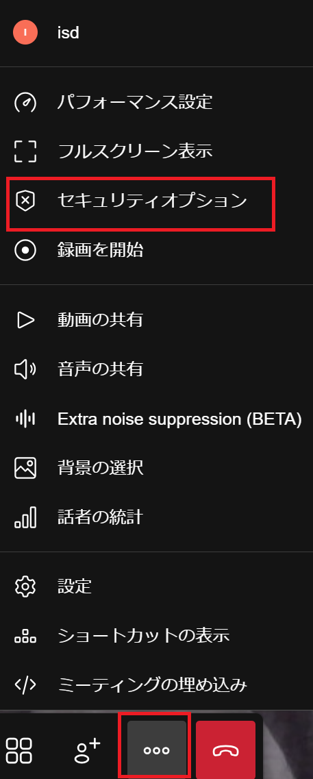 下部メニューの「詳細オプション(三点メニュー)」から「セキュリティオプション」を選択します。